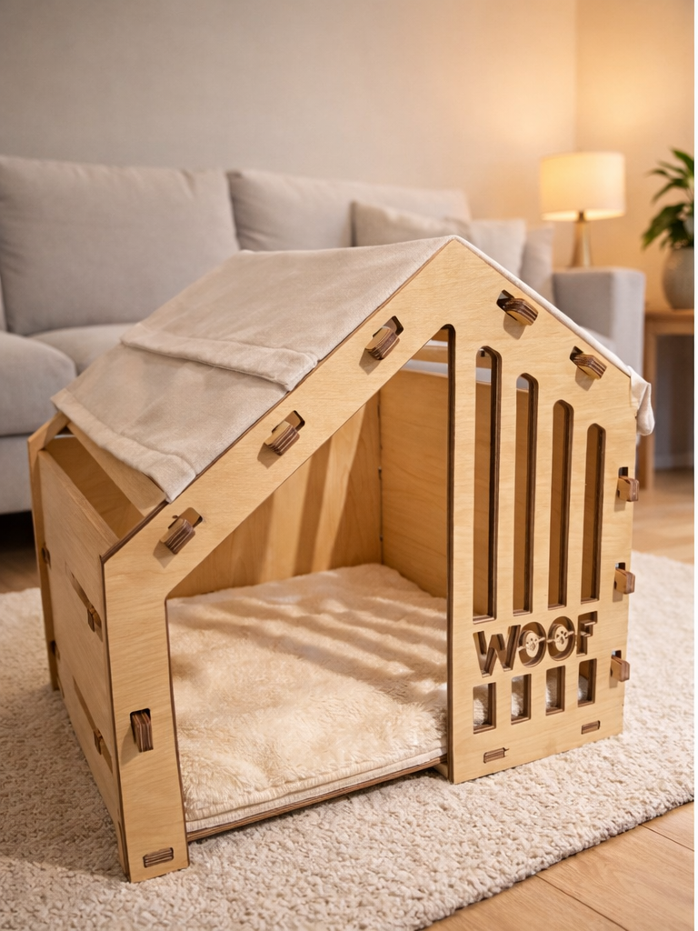 Căsuțe demontabile pentru animale de companie, gândite să trăiască firesc în casa ta. Design scandinav, materiale curate și montaj simplu, fără compromisuri.